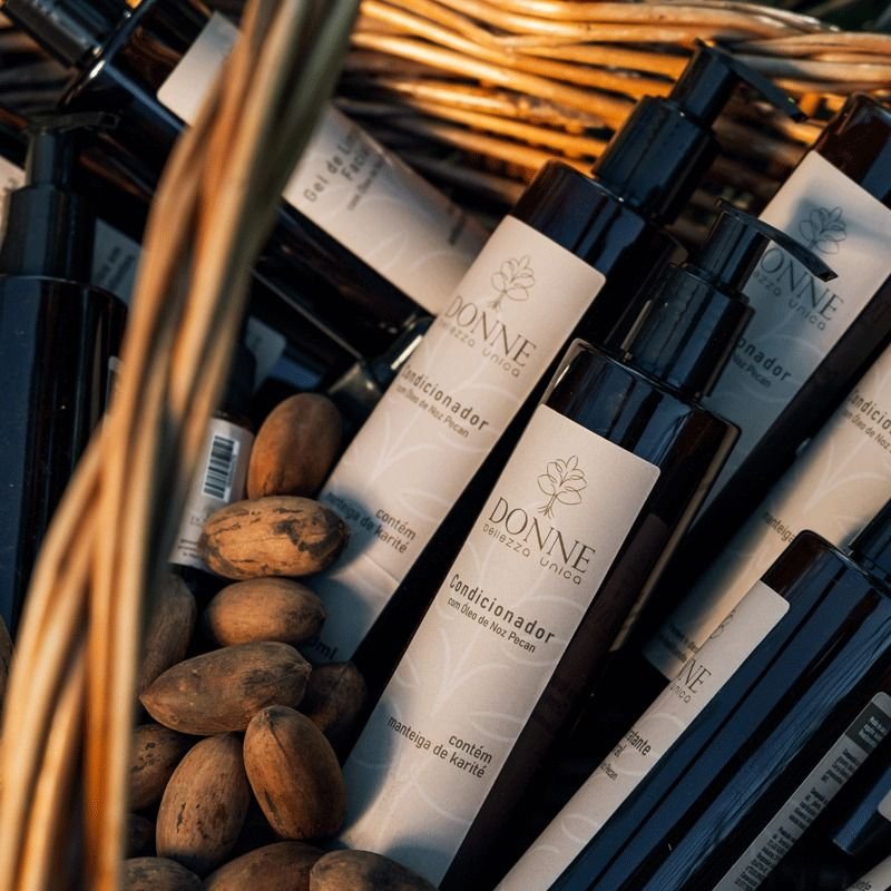 O Condicionador Donne é um produto que possui em sua composição manteiga de karité e óleo de noz pecan, onde juntos promovem hidratação e reparação dos fios, além da redução da estática, reduzindo o frizz e facilitando a penteabilidade.