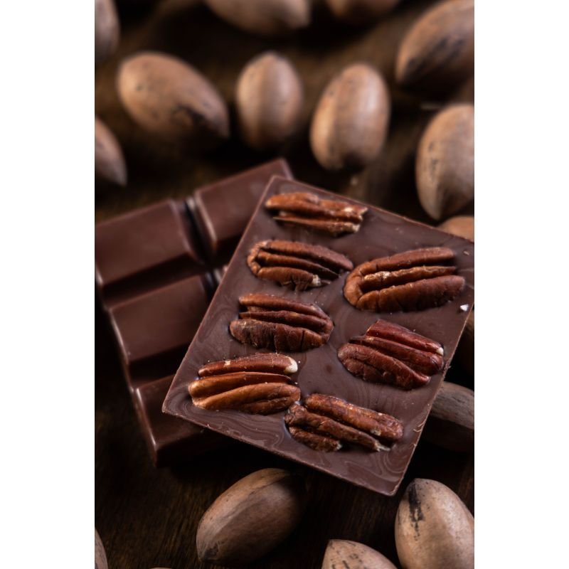 🍫 Tablete de chocolate com noz pecan – Uma fusão equilibrada entre o chocolate nobre e a crocância da noz pecan.
