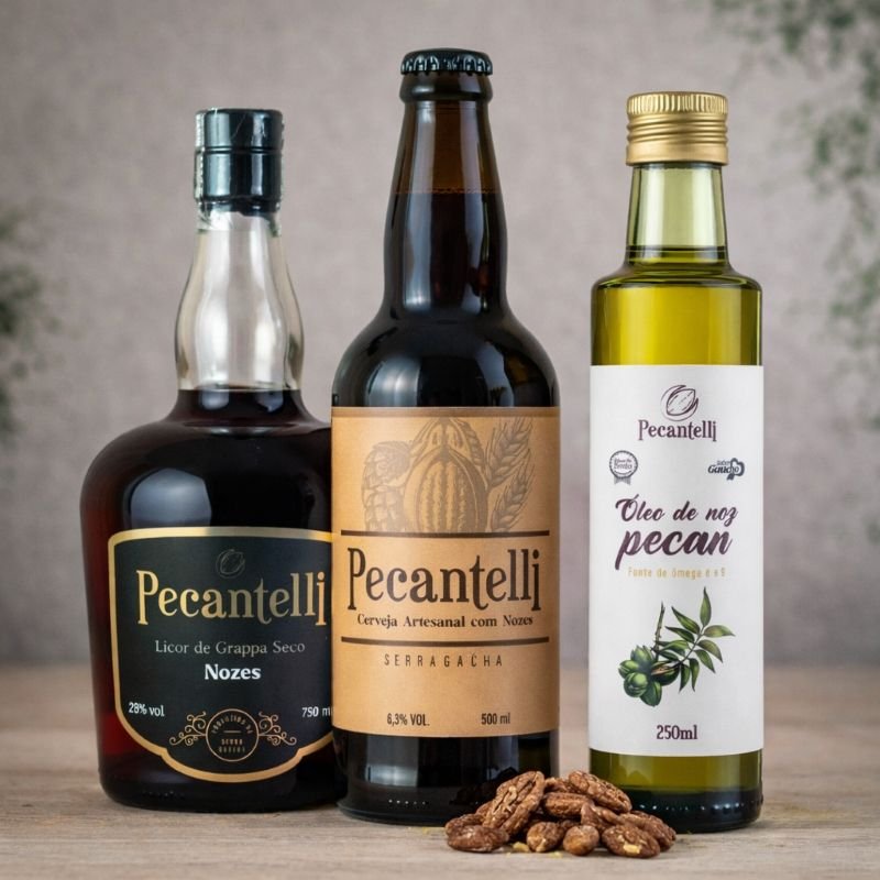 O Kit sofisticação da Noz Pecan reúne três produtos artesanais e exclusivos, desenvolvidos para quem aprecia sabores sofisticados e experiências gastronômicas diferenciadas.