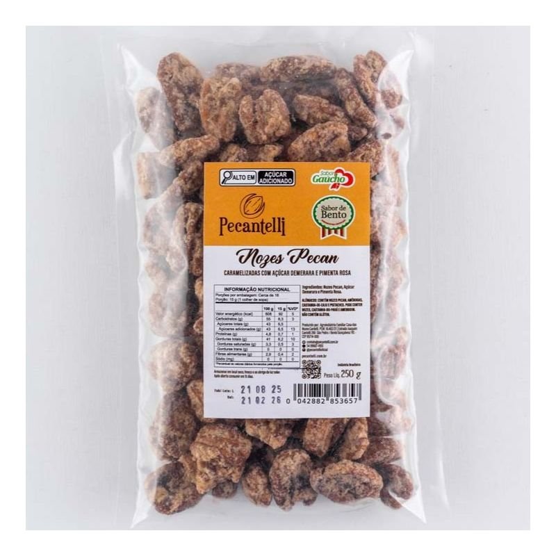 Apaixone-se pela combinação sofisticada do doce com a pimenta da nossa noz pecan caramelizada com açúcar demerara e toque sutil de pimenta rosa. O açúcar demerara, menos refinado, preserva nutrientes naturais, enquanto a pimenta rosa adiciona um aroma especial rico em antioxidantes. Nossa noz pecan é fonte de vitaminas E, B e minerais como zinco e magnésio, que promovem a saúde do cérebro, fortalecem o sistema imunológico e possuem ação anti-inflamatória. Aproveite essa explosão de sabor que une prazer e saúde em cada mordida, ideal para quem valoriza qualidade, nutrição e bem-estar.