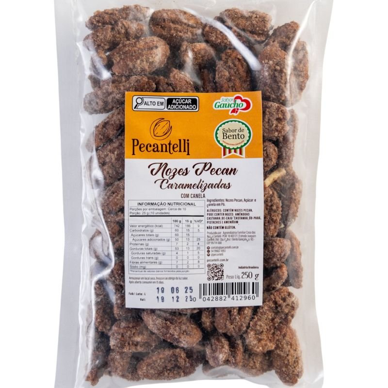 É uma noz pecan crocante caramelizada e finalizada com um toque de canela para um sabor acolhedor e aromático.